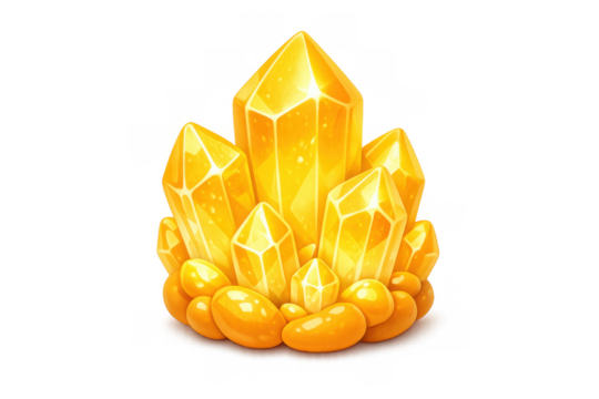 fantasy crystal cluster glowing purple, cartoon style, transparent background
