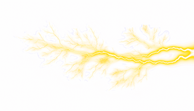 Two dynamic streams of energy in yellow and blue, colliding and generating a powerful electric spark effect. Transparent background