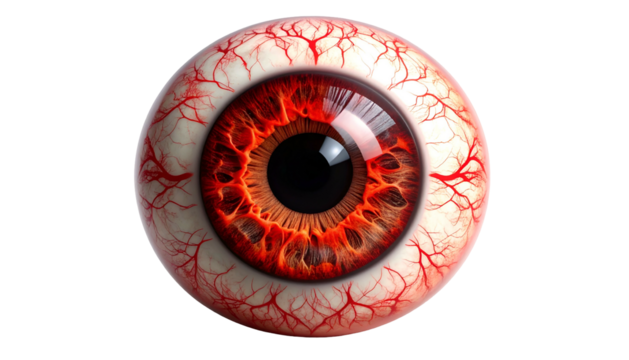 Futuristic neon abstract eye design with spiky rays on transparent backdrop