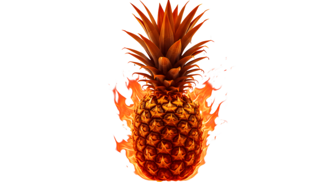 Pineapple with fire effect on white background studio shot