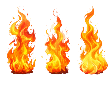 Fiery abstract flame shape, glowing orange and yellow hues fire, isolated on white or transparent background, AI