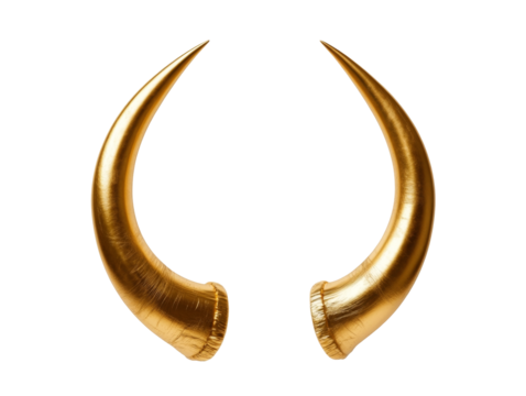 Curved bone tusk with textured base isolated on transparent background. Cream horn isolated on white background.
