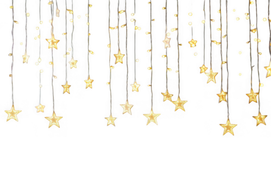 Hanging star lights string decoration christmas party holiday celebration festive glowing stars isolated on transparent background