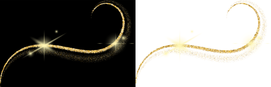 Shining golden starburst patterns on transparent background