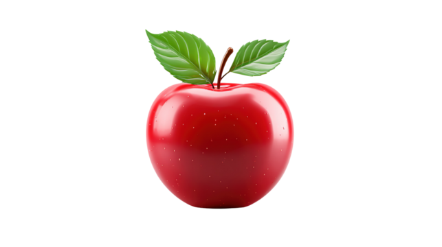 Red apple with leaf on transparent background isolated white background