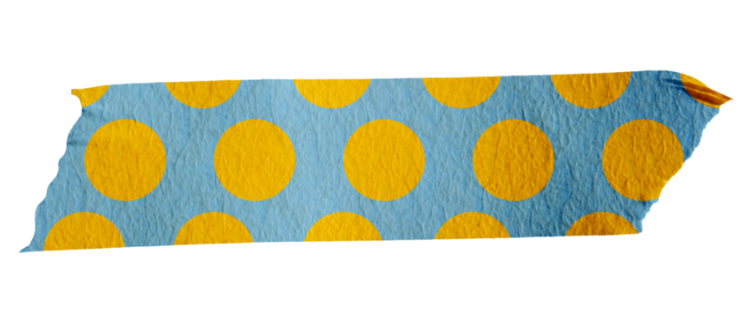 Ripped torn paper adhesive blue yellow dot pattern washi tape on transparent background