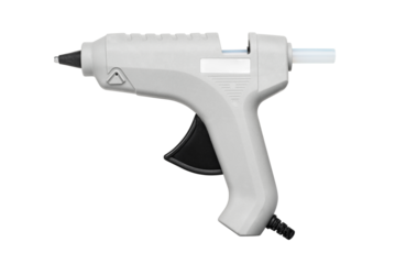 Isolated handheld electric hot glue gun applicator, arts and crafts tool, side view