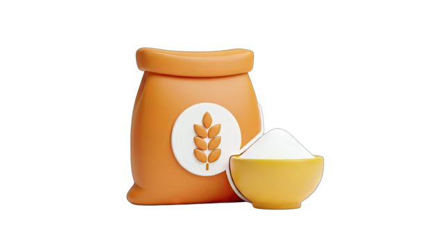 Flour Bag and Bowl with Flour - 3D Render