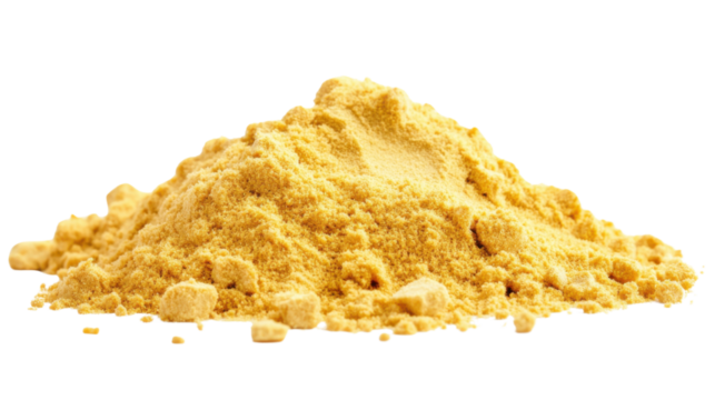 Pile of mustard powder forming a small mound on transparent background