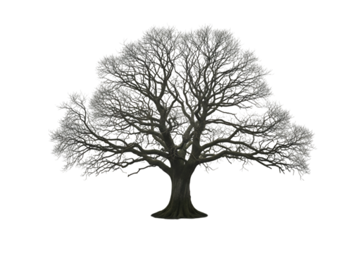 A majestic, old oak tree with lush green foliage and thick, gnarled branches background removed