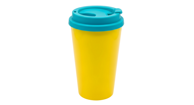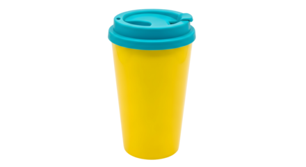 Bright green travel mug designed for hot beverages on the go on a transparent background, cut out