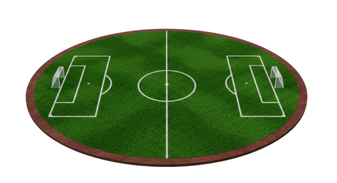 PNG of A vibrant green round soccer field with white markings, evoking a sense of play and competition.