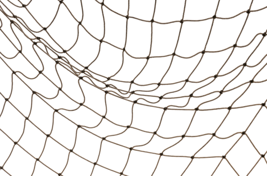 Torn Football or tennis net. Rope mesh on a white background close-up