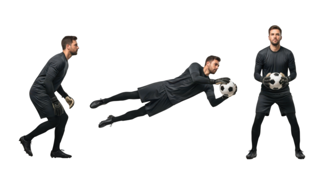 Goalkeeper Diving to Catch Ball in Studio Shot Transparent Background
