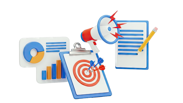 Arrow hitting bullseye on transparent background for goal achievement theme