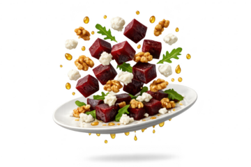 Beet Salad with Goat Cheese, Walnuts, on transparent background setup