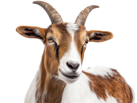 Isolated goat head transparent background with detailed fur