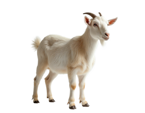 Adorable young goat kid tethered with rope isolated transparent background farm animal photography