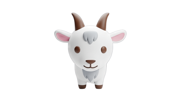 3D Cute cartoon goat character transparent background