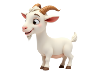 A mature white goat with long curved horns standing on a transparent background isolated on transparent background