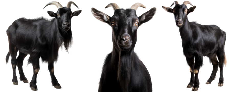 black goat collection (portrait, standing), animal bundle isolated on a white background as transparent PNG