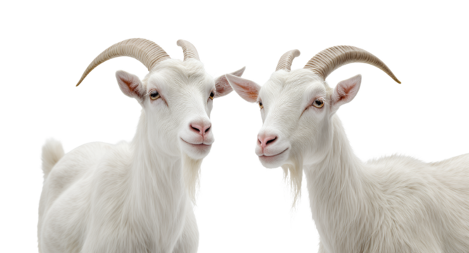 Two White Goats on a White Background
