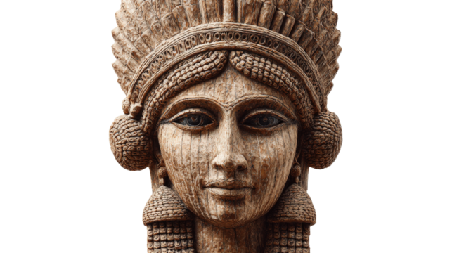 Babylonian goddess statue, isolated on a Transparent background, PNG file.
