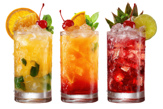 Brandy Crusta, Ward 8 eight, Godfather cocktail PNG set bundle, transparent isolated background. Mixology, bar menu cocktails, colorful vibrant refreshing mixed drink with garnish