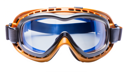 Ski goggles with white strap isolated. Winter sports equipment. Outdoor gear projects. Seasonal visuals.