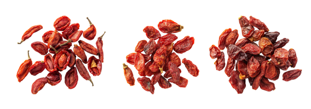Pile of dried Goji berries highly detailed isolated on white or transparent background cutout PNG