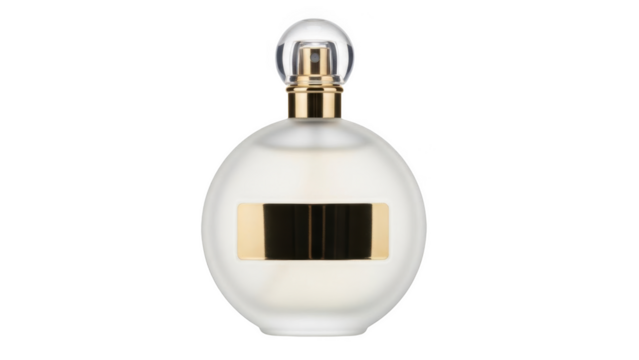 Frosted glass perfume bottle with gold accent fragrance