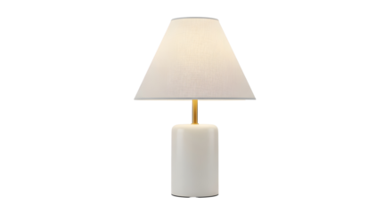 Modern desk lamp with white shade and gold accent, casting a warm glow, perfect for stylish interiors, add a touch of elegance to your designs