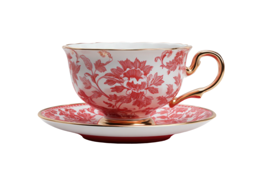 Elegant floral patterned teacup and saucer with gold accent