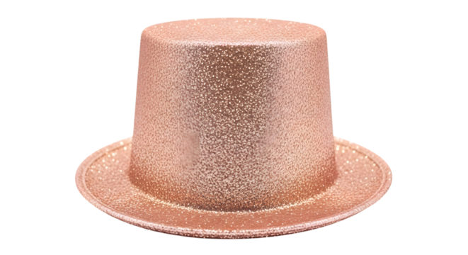 Sparkling rose gold glitter top hat for parties and celebrations isolated on transparent background