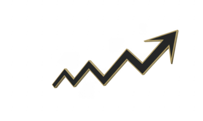 Rose gold arrow pointing up isolated PNG, growth concept for business success and financial progress on transparent background