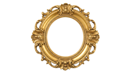 Gold ornate frame with empty space on transparent background