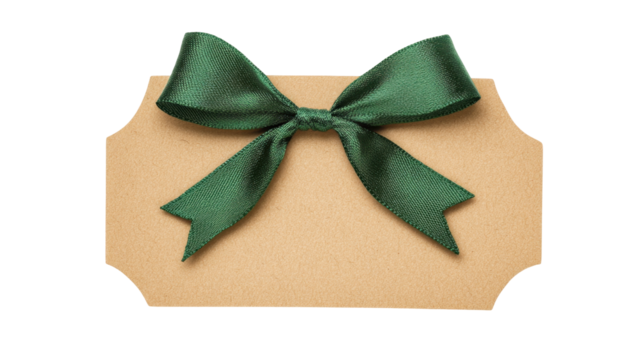 Elegant Gift Card with a Glittery Green Ribbon Bow on a Glittering Gold Background