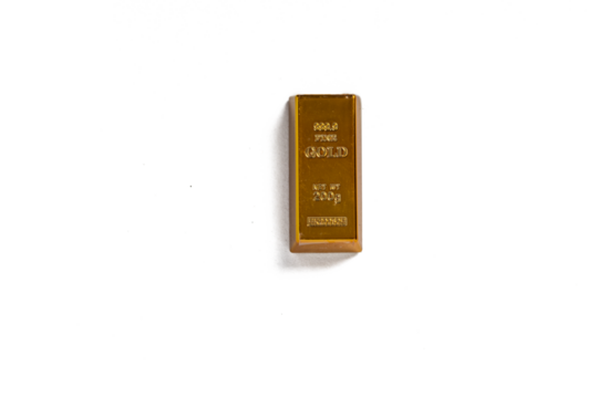 A single gold bar shines against a white background, epitomizing wealth and stability.