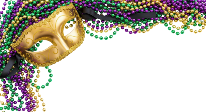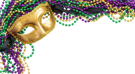Mardi gras beads spiral purple green gold isolated on transparent background