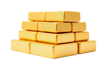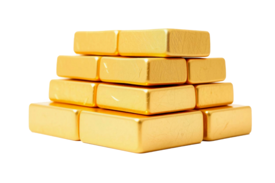 3D Gold House and Gold Bricks Illustration Isolated Background