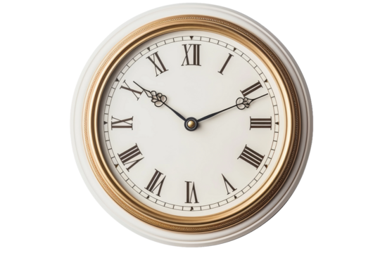 White wall clock with roman numerals on transparent background