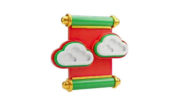 Luxurious chinese traditional ruyi cloud pattern in red and gold 3d render isolated on transparent background for asian design