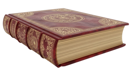 Ornate maroon book with gold edges and blue ribbon isolated, vintage style book for reading and collecting