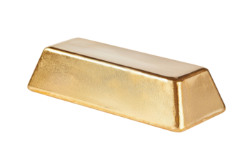 Shiny gold bar with a textured surface, captured in high detail. The image shows the bar's clean edges and metallic finish. Isolated on transparent background, png.