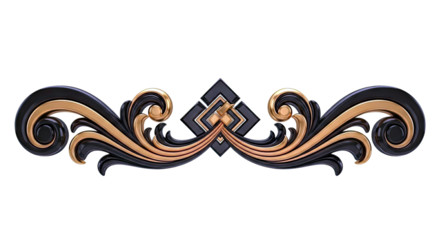 Black and Gold Ornate Scrollwork with Geometric Centerpiece