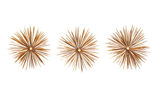 A vibrant illustration showcasing four bursting gold fireworks against a transparent background