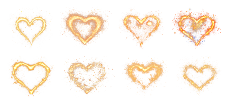 PNG Sparkling heart-shaped fireworks display, element set on transparent background