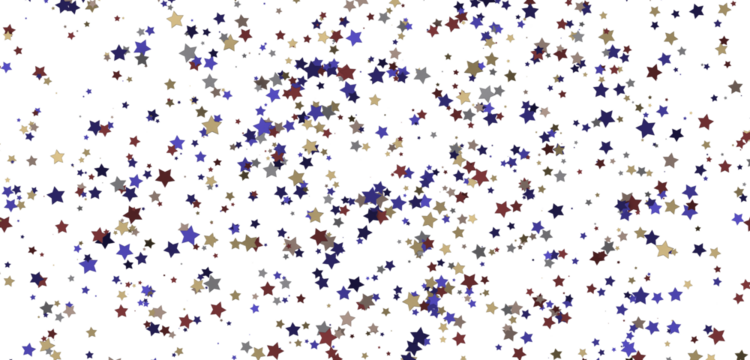 Gold confetti in the shape of stars isolated on a white or transparent background. Decoration for holiday backgrounds