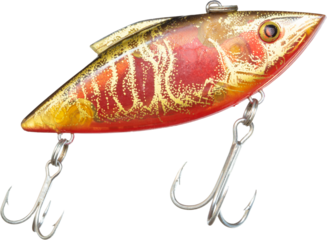 Gright red and gold colored fishing lure