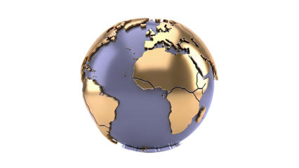Golden wireframe globe isolated on white, world map model for geography and international business concepts